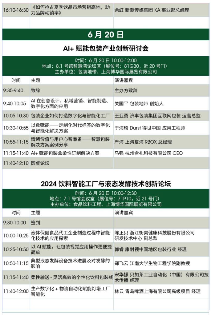 2024年联展集结多位专家学者、企业代表,将召开多场高峰论坛和创新技术交流会,围绕数字化工厂制造、智能自动化、食品安全、可持续包装、AI设计等行业热点,进行全面深度解读与探讨。
