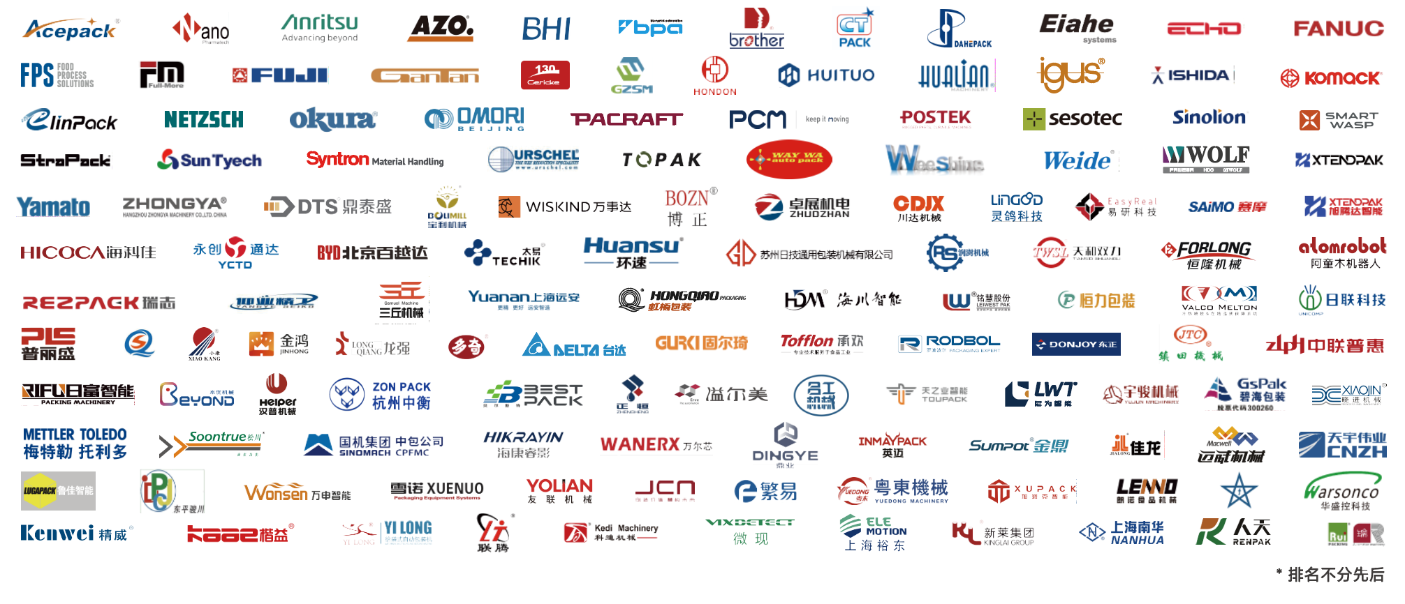 以下名优行业巨头作为ProPak China和FoodPack China的战略合作伙伴长期以来一直给予展会鼎力支持,并重点参与本展会,主办方深感荣幸。各方携手共同构建中国卓越加工包装科技盛会。