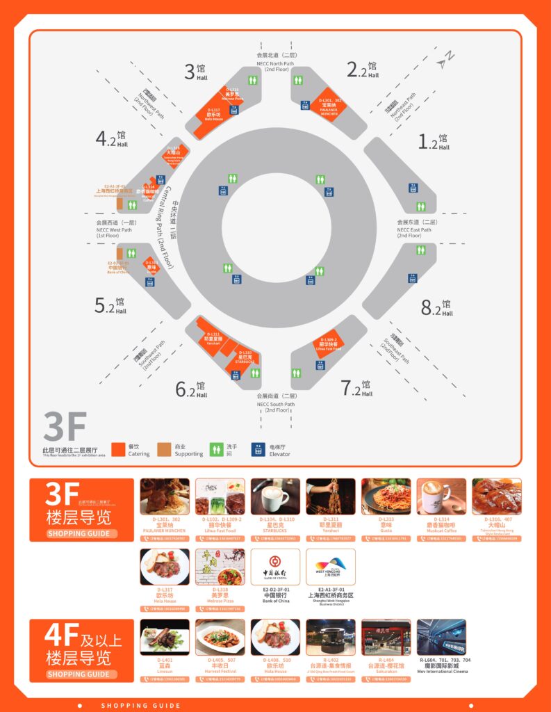 在国家会展中心(上海)场馆内,您可以方便地找到各类餐厅、便利店、小吃吧及其他餐饮服务。